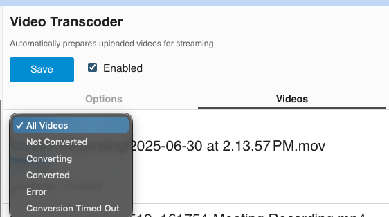 To answer your question: Verint does not have a built-in alert system that automatically notifies administrators, when the video transcoder stops or when a certain number of videos fail to convert. This is something that would need to be configured as a custom monitoring solution based on the admin area described below.